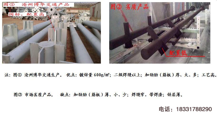 同樣的東西為何報價相差很多,都是熱鍍鋅,都是鋼管加工,為何雙方有很大差價。主要原因在于客戶,客戶含糊的提供標志牌尺寸或者主桿橫臂尺寸后,對細節類似底座法蘭盤、橫梁法蘭、加筋板等配置無要求,由廠家自主設定,報價差距就在這了。打個比方來說,客戶就像去4S店買汽車,只說買奧迪2.0T排量,內飾沒要求,奧迪內飾不同,價格相差10多萬。返回來講,交通標志桿當中最常見的主桿φ273mm,橫臂φ152mm(φ159mm)這兩種尺寸,是高速公路、國道、省道最常見的交通標志結構設計圖紙。咨詢多家交通標志桿生產廠家,報價出入高達2000多元/套,低者報價3600-4000元,高者報價5000-6000元,區別在于立柱法蘭盤、底座鋼板、預埋件、橫梁加筋板等配置上。滄州博華交通公司本著嚴謹的工作態度,對每一套交通標志桿都有嚴格的生產要求,無論是從橫梁加勁肋及基礎底座材料上來說,配置都很高。品質的不同,價格會不同。便宜沒好貨,好貨不便宜,博華交通標志桿無論從用料、焊接、鍍鋅等方面下足了本錢,它的成本就高,它的銷售價格自然就高。文章未經許可,不得轉載,違者必究!